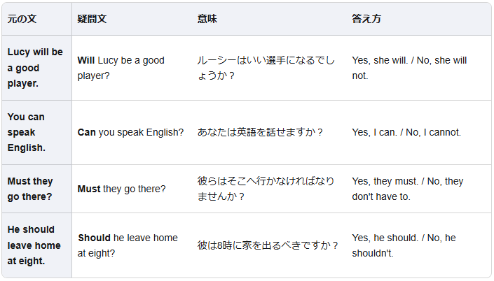助動詞を使った文を疑問文にするには、助動詞を文頭(主語の前)に移動させるだけです。